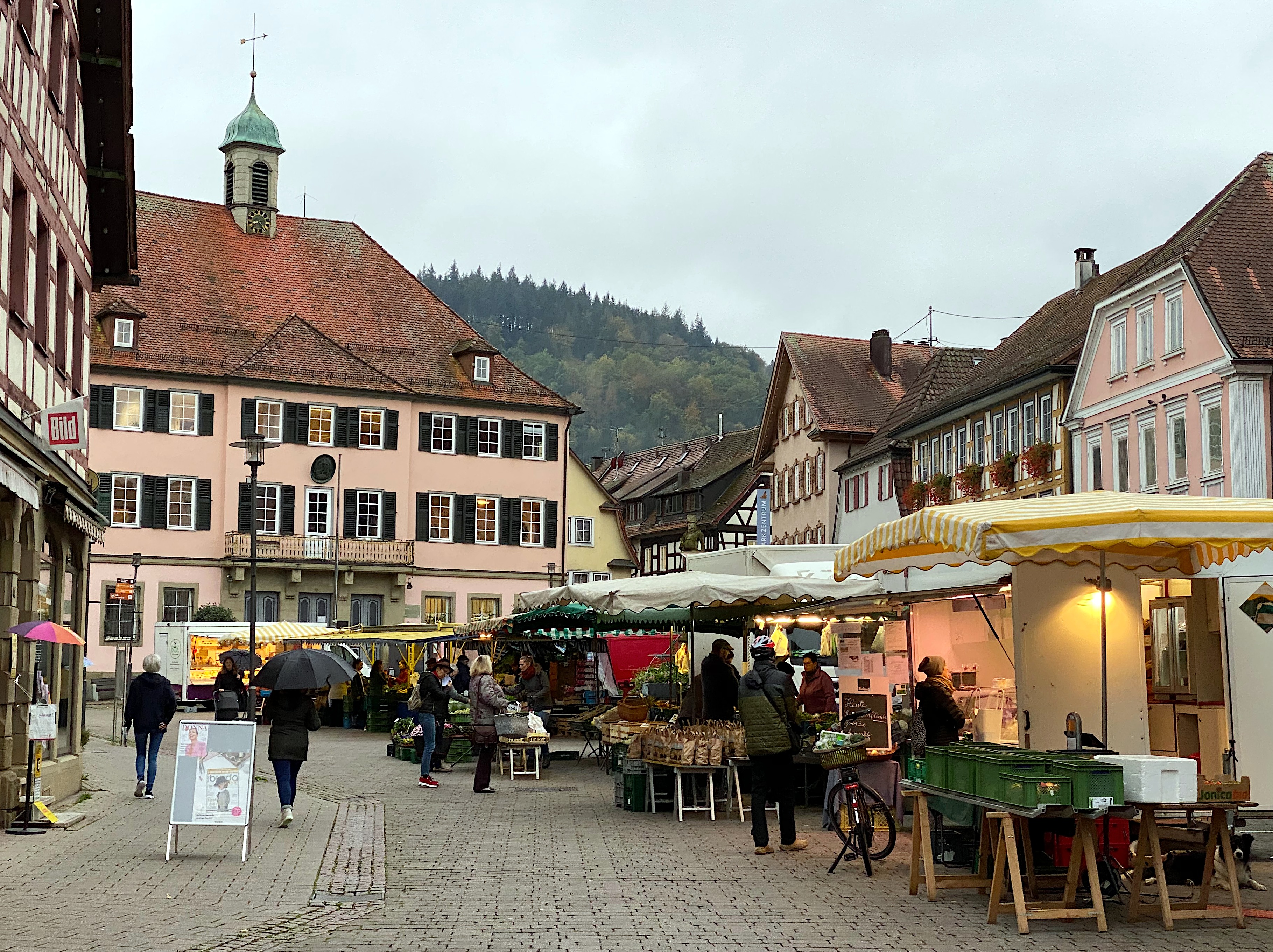 Aber ein Schlaraffenland an mir vollkommen unbekannten Sorten bot sich mir erst in diesem Herbst in Murrhardt auf einem kleinen niedlichen Wochenmarkt. Die verkauften Äpfel sind regional, ungespritzt und kommen auch von Streuobstwiesen. Beim Kauf gibt es eine kleine Liste von allen angebauten Sorten, deren Erntezeit sowie mögliche Lagerzeit dazu. Der erste Apfel der im Jahr geerntet werden kann, ist im Juli der Klarapfel. Dieser hat nur eine kurze Lagerzeit. Der auf der Liste aufgeführte Apfel, der am spätesten geerntet und am längsten gelagert werden könnte, ist ein Glockenapfel; Ernte Mitte Oktober und bei guter Lagerung bis März haltbar.