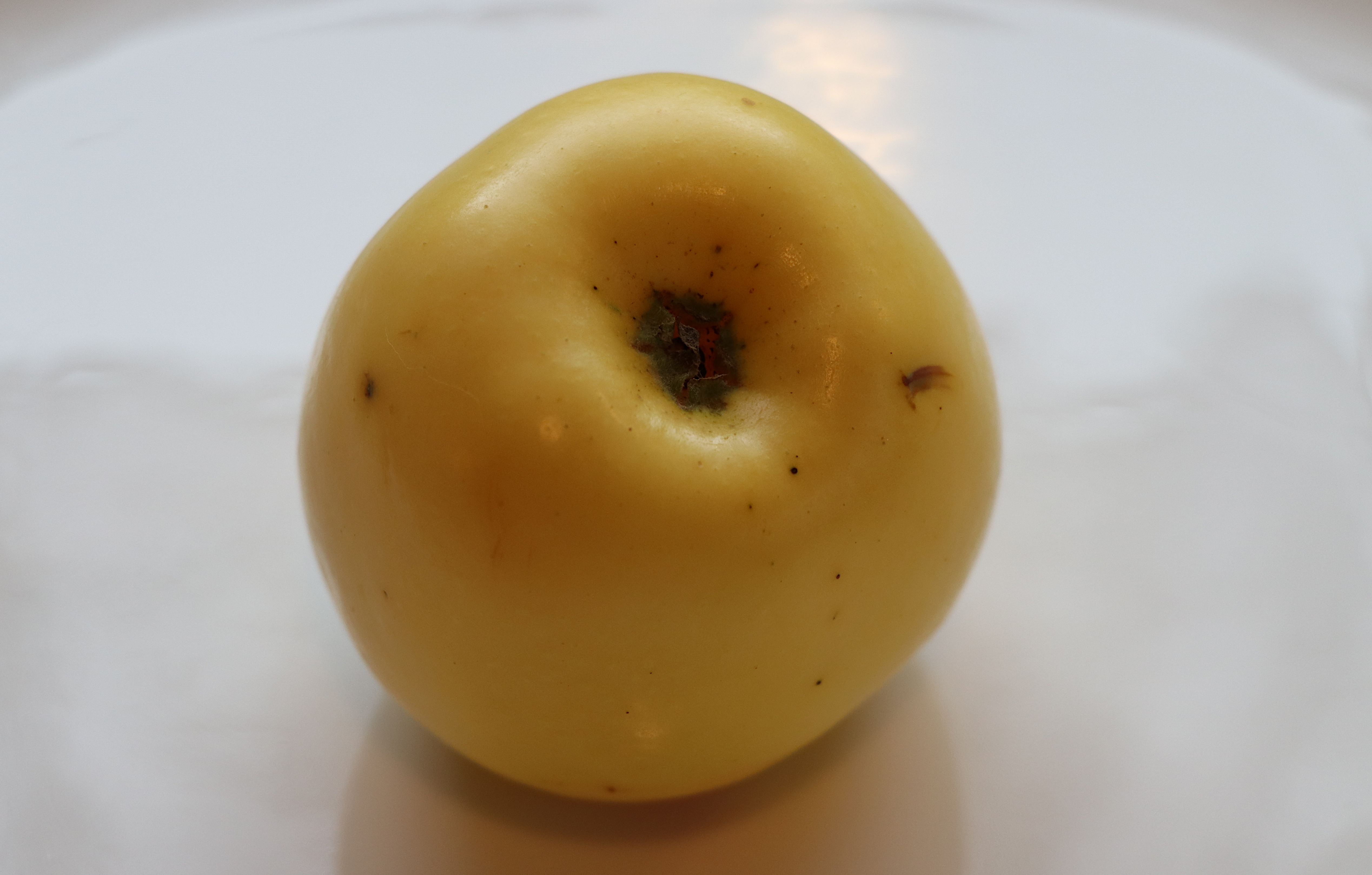 Erinnert auf den ersten Blick an einen Granny Smith, ist aber nicht ganz so sauer wie dieser. Obwohl der erste Biss etwas säuerlich ist, hat er im Abgang eine leichte Süße. Der Apfel ist knackig und saftig. Nach längerer Lagerung färbt sich die Schale zitronengelb.